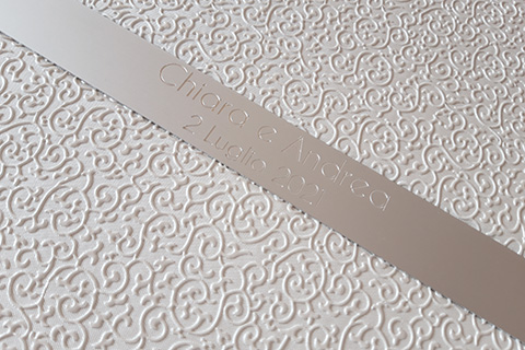 Formato, dimensione, materiale, colore e ogni genere di finitura viene scelta dagli sposi e rende ogni pezzo unico.