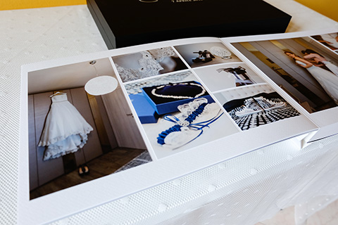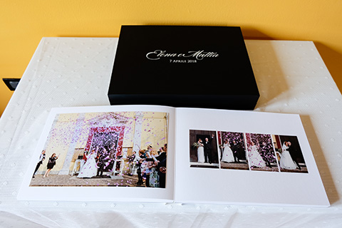 La maggior parte dei nostri sposi sceglie l'album fotolibro, un album che prevede un progetto grafico professionale in Adobe Indesign che viene poi visionato insieme agli sposi e con i quali si effettua la revisione pre-stampa.