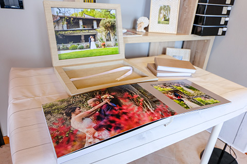La maggior parte dei nostri sposi sceglie l'album fotolibro, un album che prevede un progetto grafico professionale in Adobe Indesign che viene poi visionato insieme agli sposi e con i quali si effettua la revisione pre-stampa.
